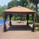 Description This gazebo can help you to enjoy the extra 11x11 Ft large shading. Combines stunning design qualities with superb craftsmanship, ideal for providing temporary shade for both commercial and household outdoor activities. Keep your outdoor events have a secure shelter with the strong foot pads for optimal support.The double top design still allows for ventilation.With an abundance of space,this gazebo provides a shady shelter for all kinds of outdoor activities like shows,wedding,exhibition,parties,shows, sporting events and etc. You can also set it up in your backyard as a large sunshade for your family and guests. Weight and Dimensions Overall Size:11Ft * 11Ft * 8.7 Ft(330 L * 330 W * 265 H cm) Item Weight:38.58 lbs (17.5 kg) Interior Space Width -side To Side:108" (9Ft;274cm) Interior Space Depth-front To Back:108" (9Ft;274cm) Carton Size: 48" * 9.45" * 9.45" (122*24*24 cm) Gross Weight:40.79 lbs (18.5 kg) Ship Type (Small Parcel, LTL): Small Parcel Product Features Product Type :Gazebo Tent Roof Material:Polyester Roof Color:Coffee Tiered Roof : Yes Frame Material :Steel Frame Finish Color :Brown/Coffee Frame Finish : Powder Coated Finish Rust Resistant:Yes Side Curtain Included:Yes Mesh Net Side Walls Included:Yes Pieces Included:1xGazebo With Ground Nails And Wind Ropes;1xinstruction Snow Load Capacity:20 lbs Roof Hanging Weight Capacity:10 lbs Adjustable Height:No Weather Resistant:Yes Fire Resistant:Yes Simple Water Resistant: Yes Details Compatible Installation Surfaces: All Surface Types Country of Origin :Made in China Installation Required :Yes Level of Assembly :Full Assembly Needed Adult Assembly Required :Yes Suggested Number of People:2 Installation Style ;Anchored Additional Parts Required :No Assembly Instructions Included ; Yes Installation Tools Included :Yes About Warranty Product Warranty : Yes Full or Limited Warranty:Limited