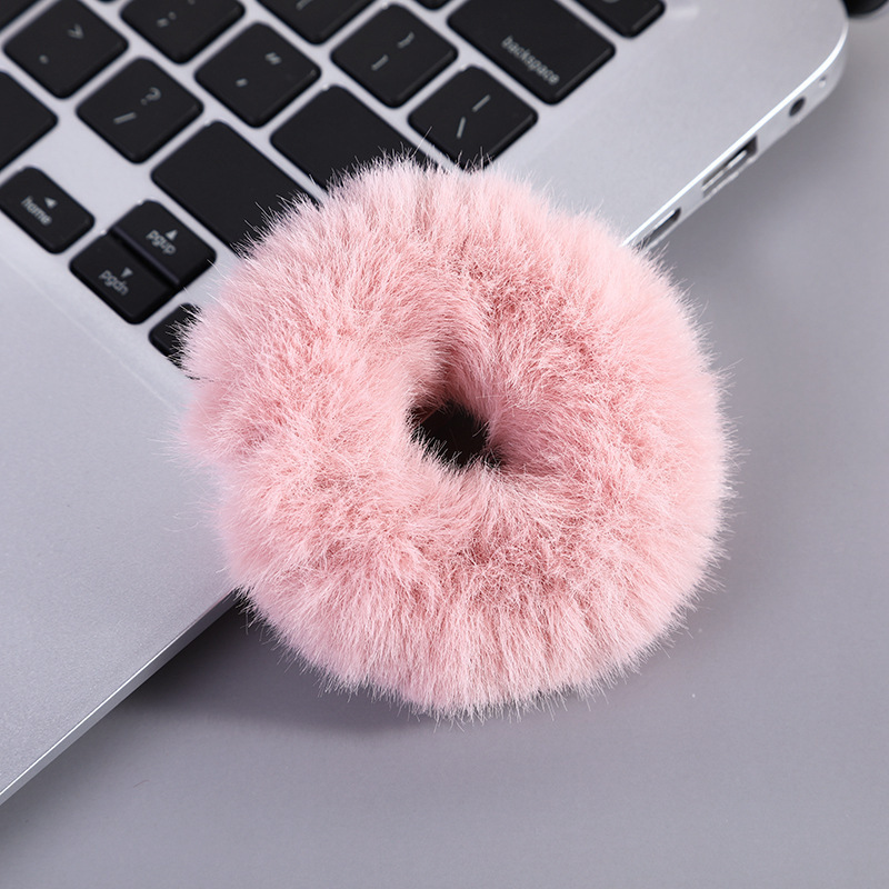Rabbit hair donut scrunchie Mink hair rope Hair velvet headdress All plush hair rope fashion headaccessories