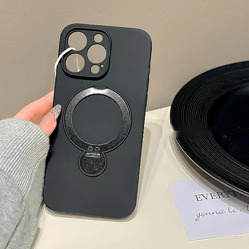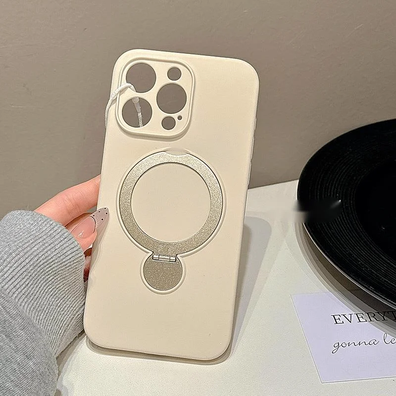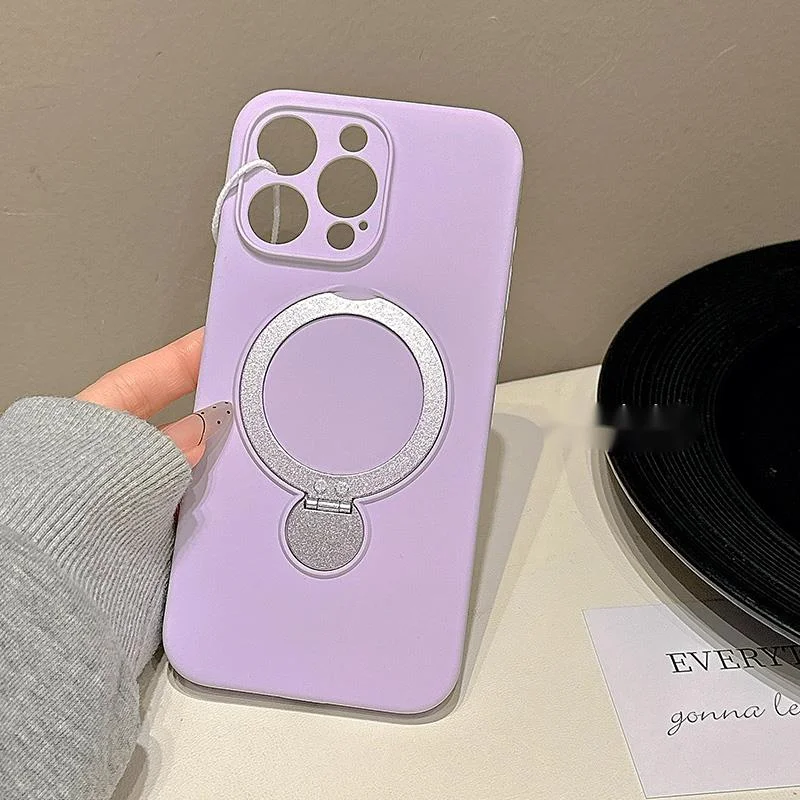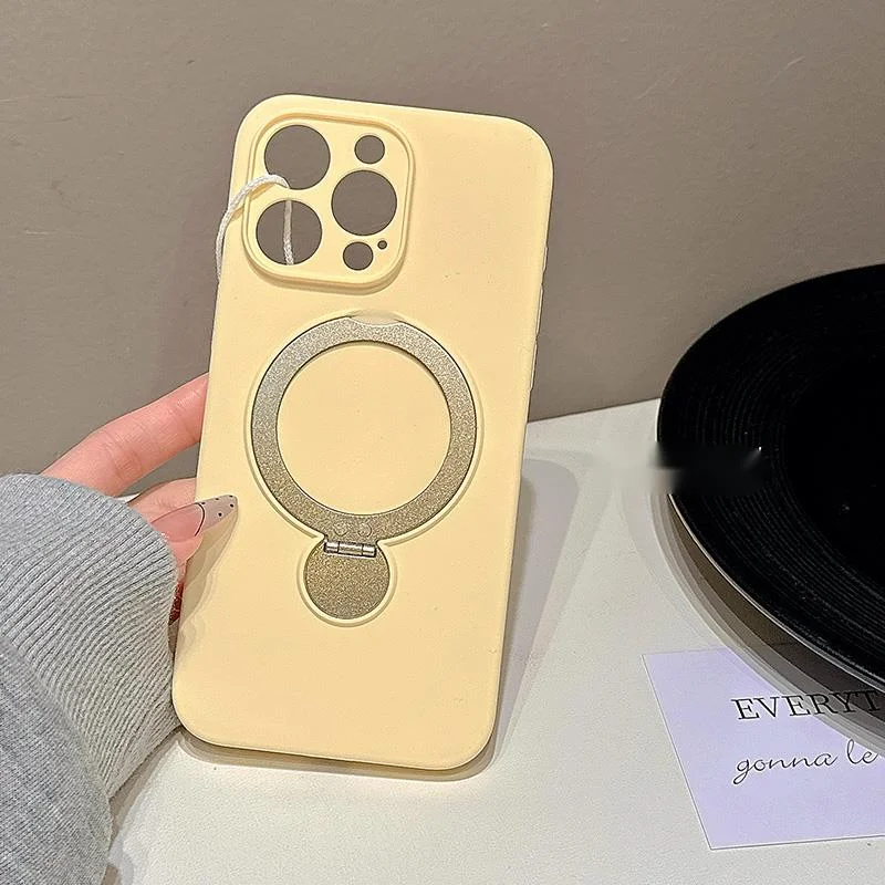 Premium solid color magnetic rotating folding stand suitable for 16 Promax phone case iPhone liquid silicone 15