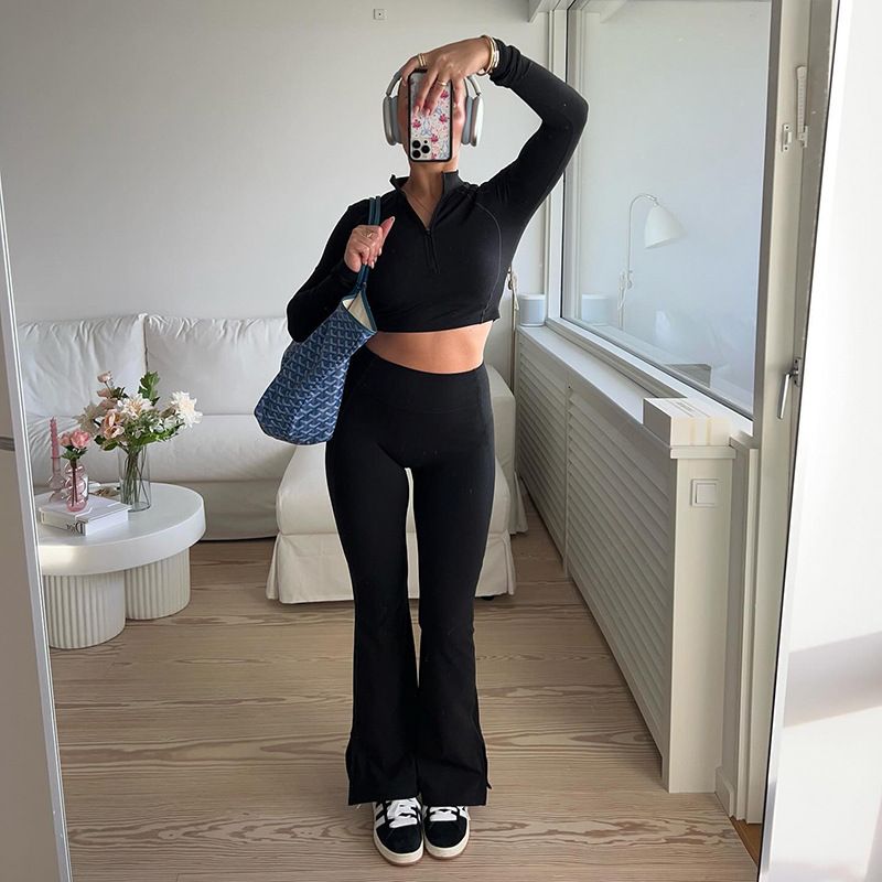 Wind high waist split tight elastic casual bell bottom pants, spicy girl fashionable sports yoga versatile slimming pants