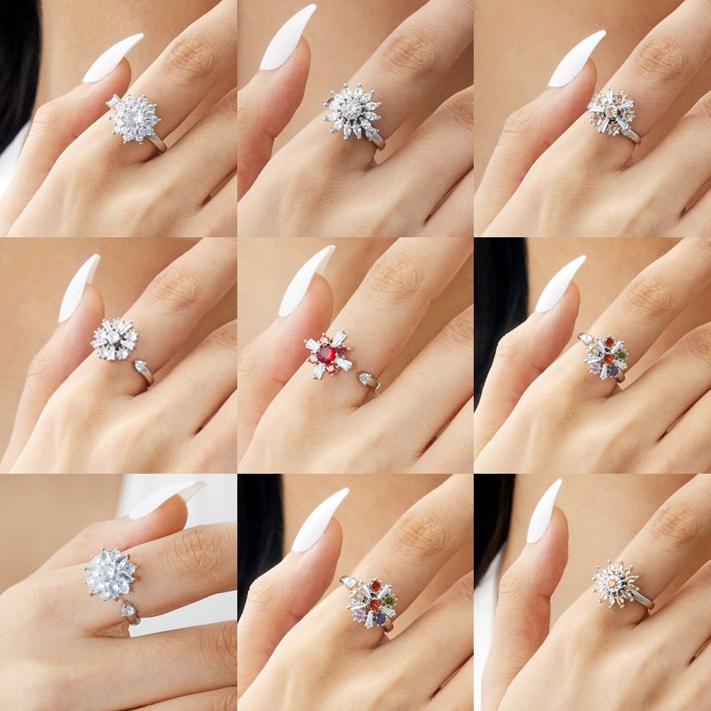 Ring for women a sense of luxury, stress relieving and rotatable windmill set with zircon flower opening adjustment ring