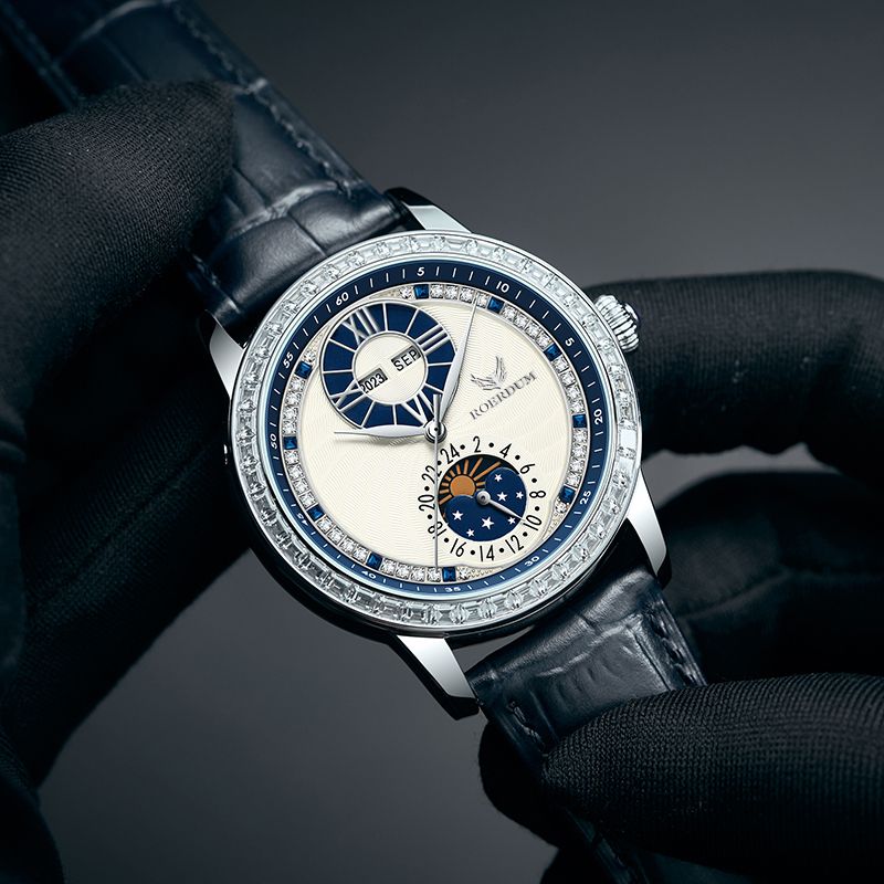 ROERDUM Legendary Master Waterproof Automatic Mechanical Movement Leather Strap Men's Watch Blue Dial Fashionable And Versatile For Any Occasion