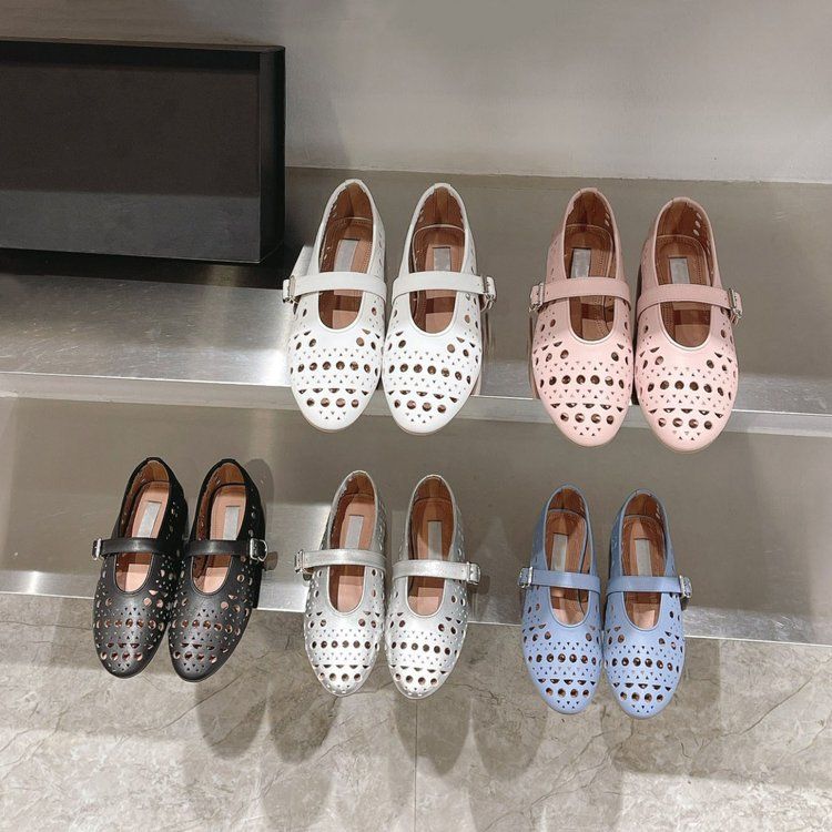 Round Toe Hollow Strap Flat Ballet Shoes Fashion Casual Single Shoes 2024 Summer New Hollow Breathable