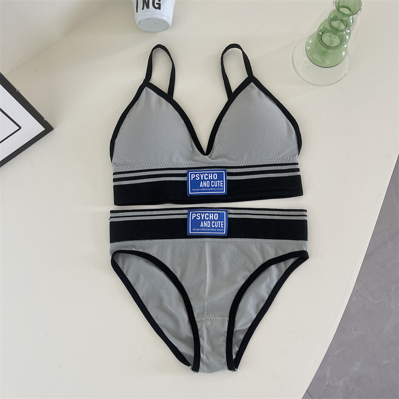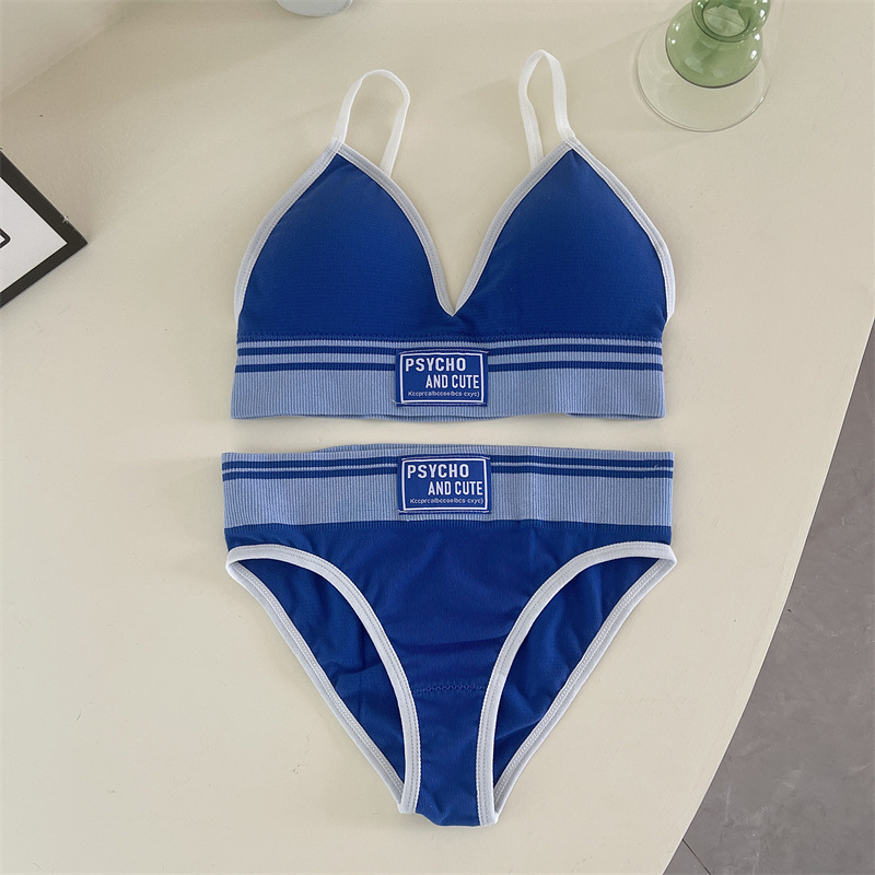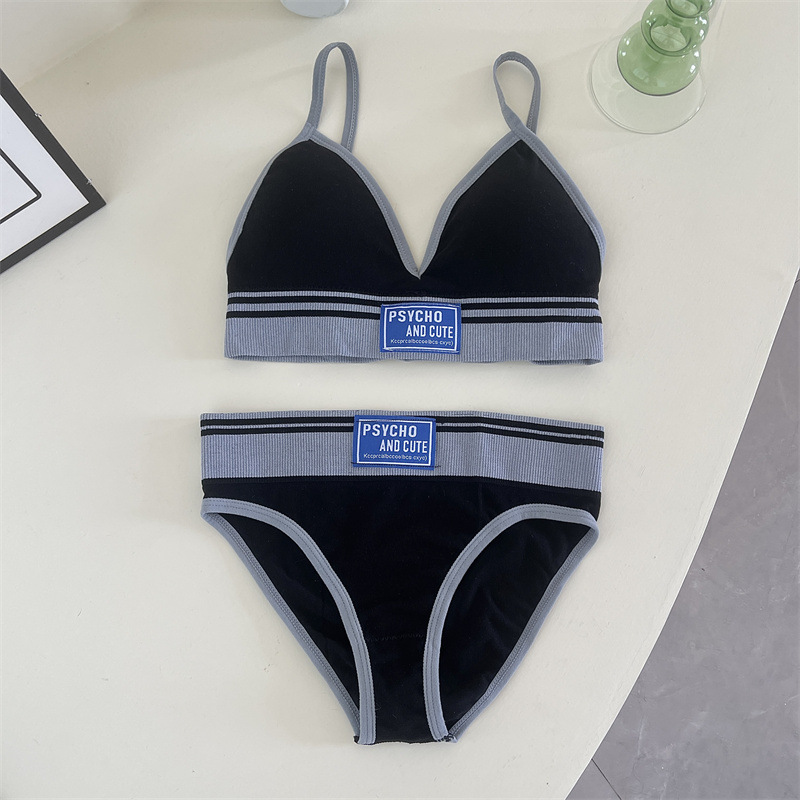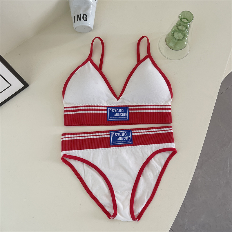 Seamless contrasting sports bra set style lingerie with no trace or steel ring V-neck bikini
