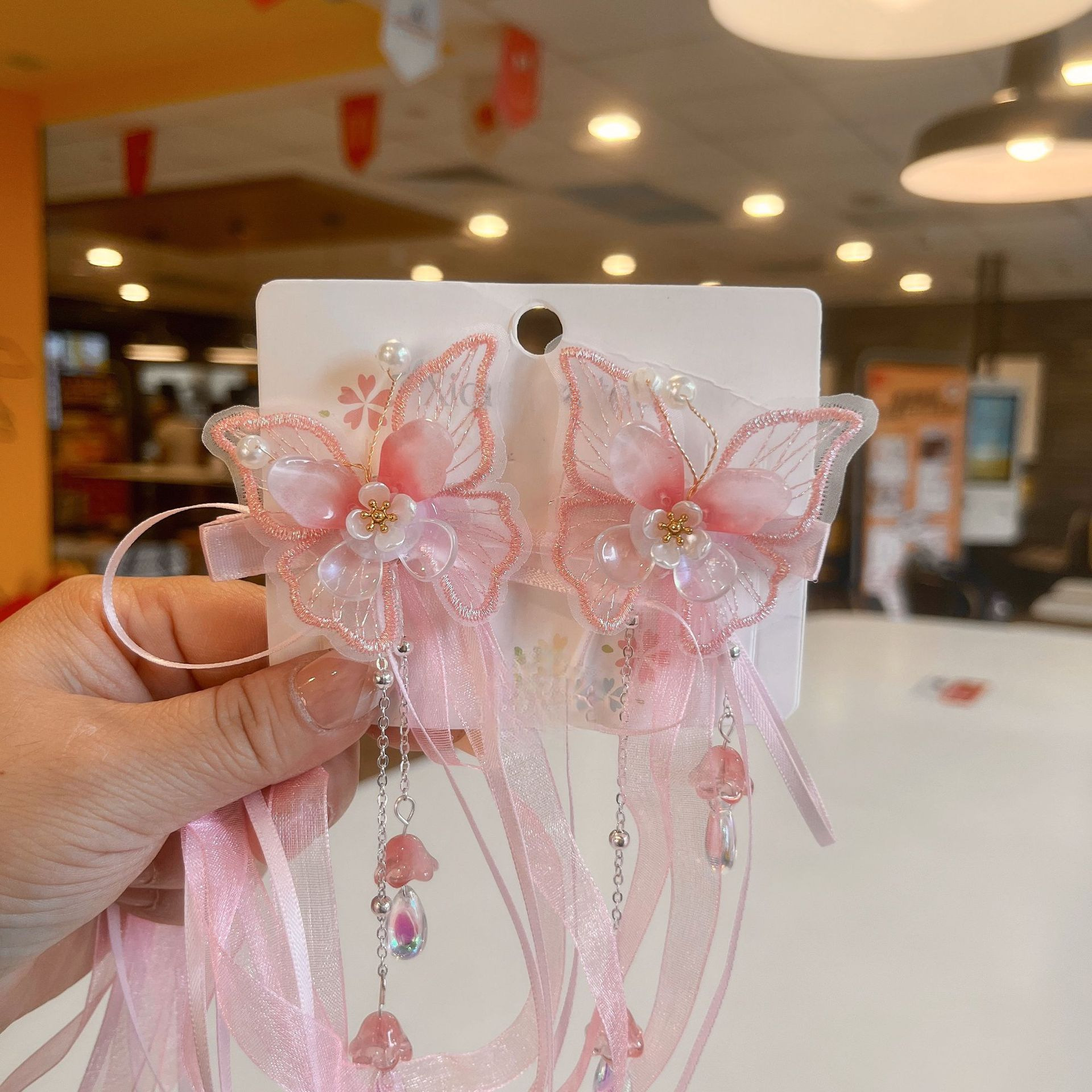 ![]() | 2/Butterfly pink flower tassel set | $ 4.49 | |