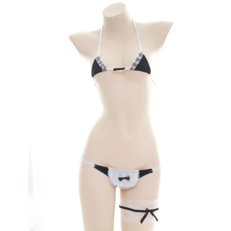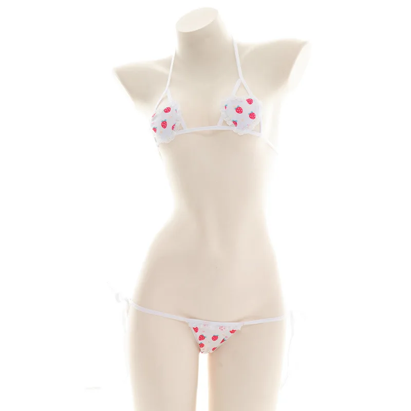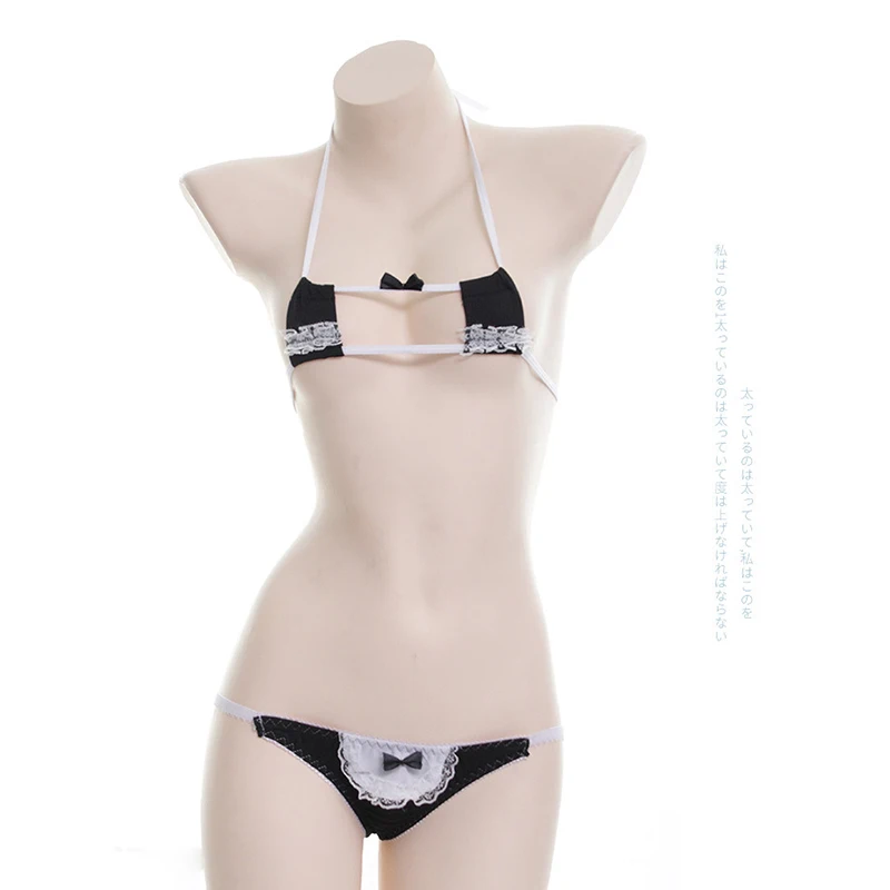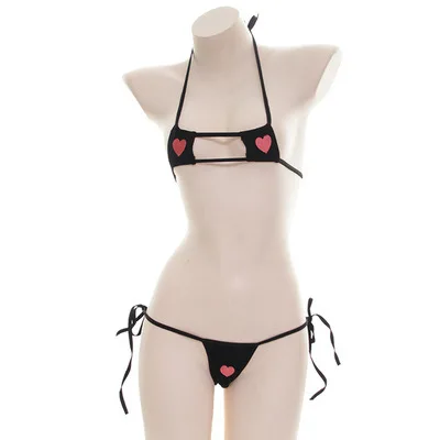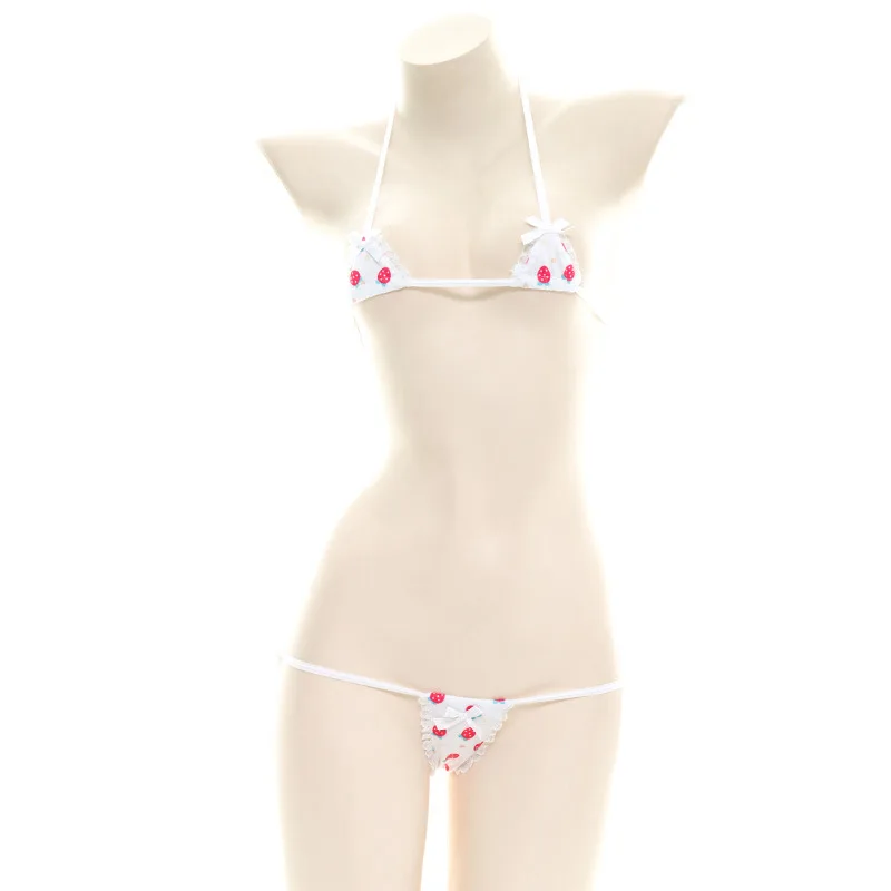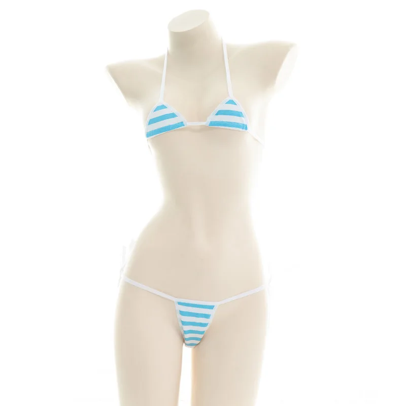 Sexy Bikini Set Women Underwear Pink Blue Stripe Cute Lingerie Micro Bikinis Swimwear Japanese Schoolgirl Anime Cosplay
