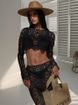 Sexy Hollow Lace For Women 2025 Summer New Round Neck Slim Top + Skirt Two-Piece Set