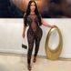 Sexy sleeveless round neck see-through jumpsuit, polyester mesh spliced sequin style, slim trousers