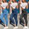 sexy zipper women's pants with pockets, whitened and distressed, fashionable women's denim workwear small-legged pants