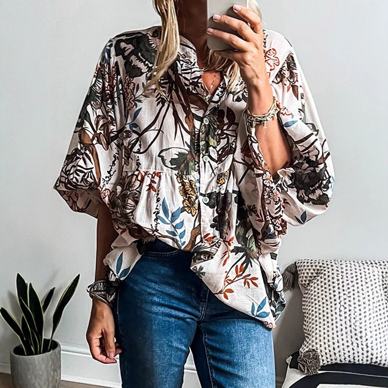 Shiying Fashion Autumn New Collection Collar Long Sleeve Top for Women, Loose and Casual, Versatile Flower Printed Shirt for Women