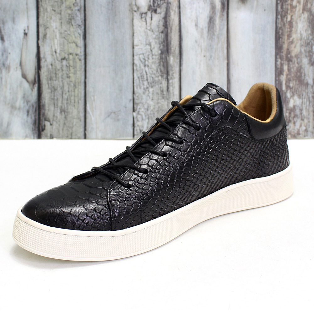 shoes for men Lace up crocodile pattern embossed flat soled casual leather shoes for men Genuine leather comfortable men's shoes