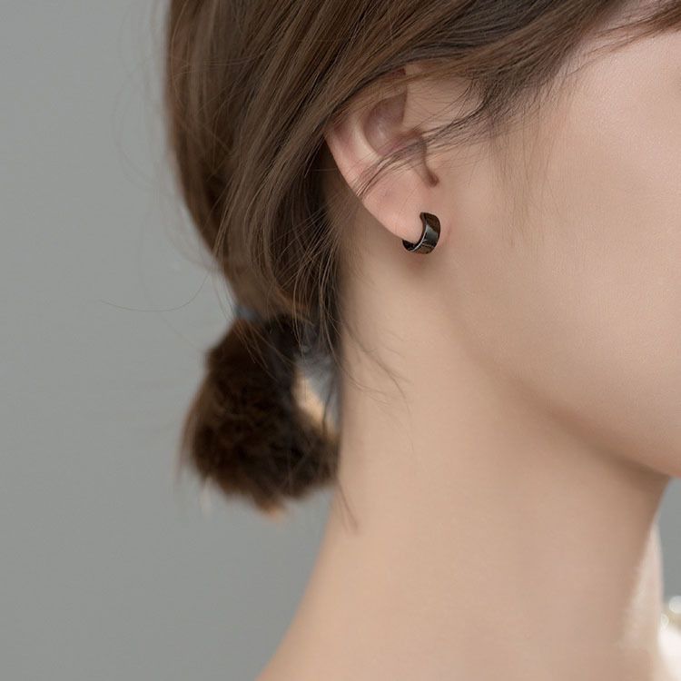Sleeping without taking off ear buckles, men's and women's smooth black earrings, trendy personality, simple, niche,