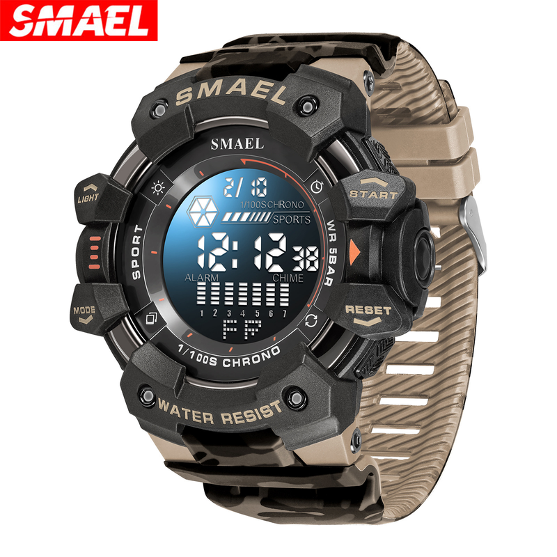 SMAEL New Men's Large dial Personalized Trendy Camo Style Sports Multi functional Nightlight Alarm Clock Men's Watch