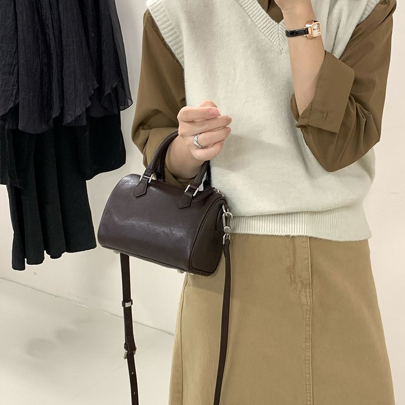 Small Mantou shaped bowling bag women's bag 2024 new leather Boston leather bag portable shoulder bag