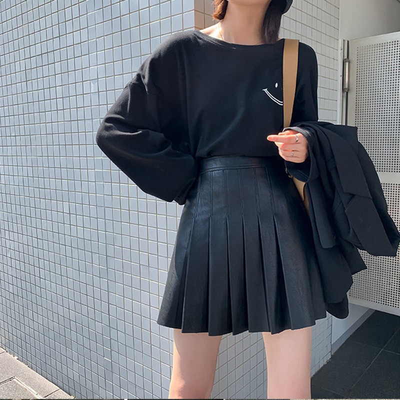 Smiling face long sleeved T-shirt women's 2022 autumn Korean version new round neck loose fitting women's bottom top