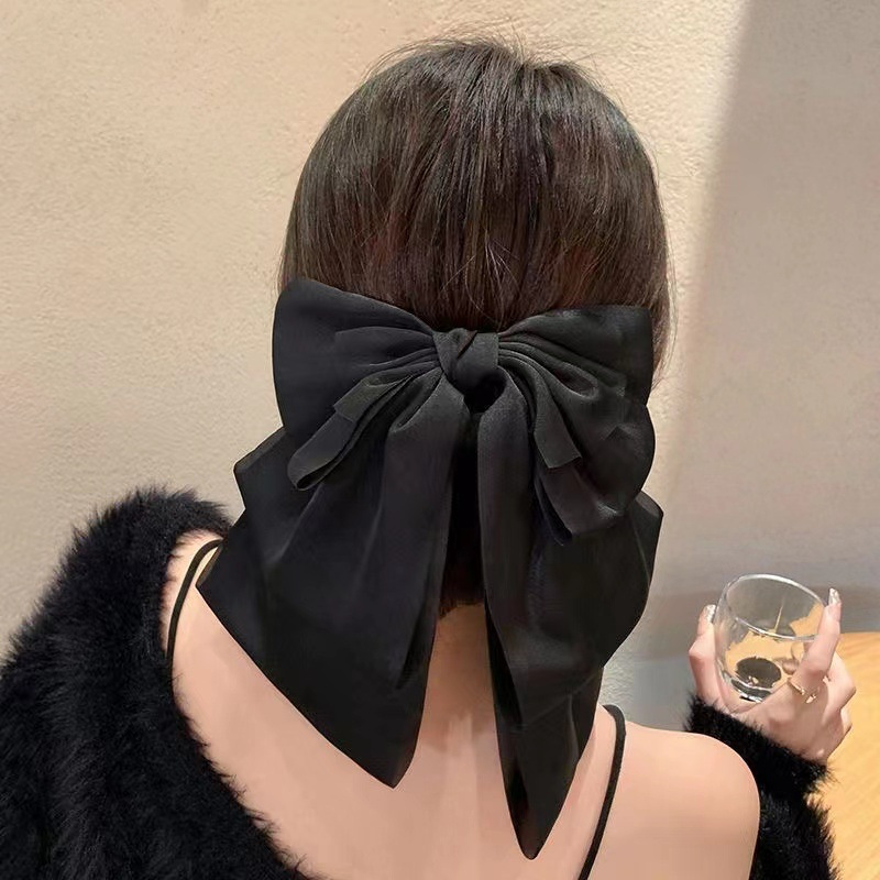South Korea new big bow hairpin back head fixed hair spring clip top clip long ribbon bow headdress