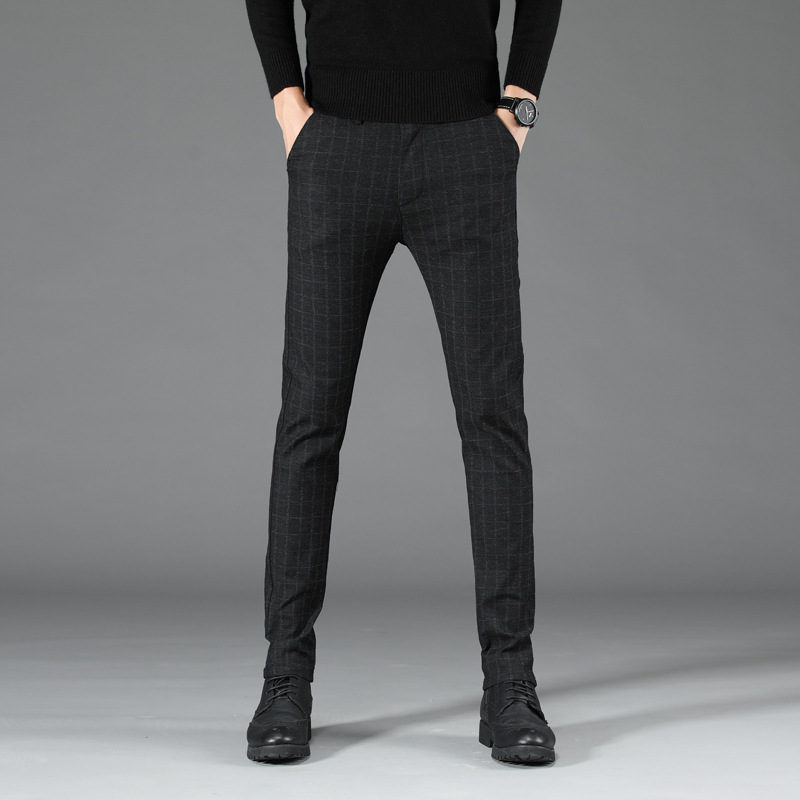 Spring and Autumn checkered casual for men, straight leg slim fit elastic work pants, youth trendy men's pants
