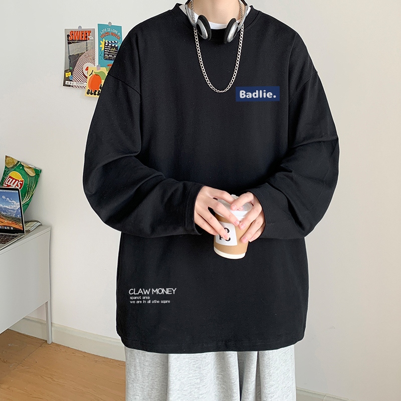 Spring and Autumn Fat Man Long Sleeve T-Shirt Men's Extra Large Size Fattened Plus Size Sweater Fat Man Loose Fat Man Bottom Shirt 150kg