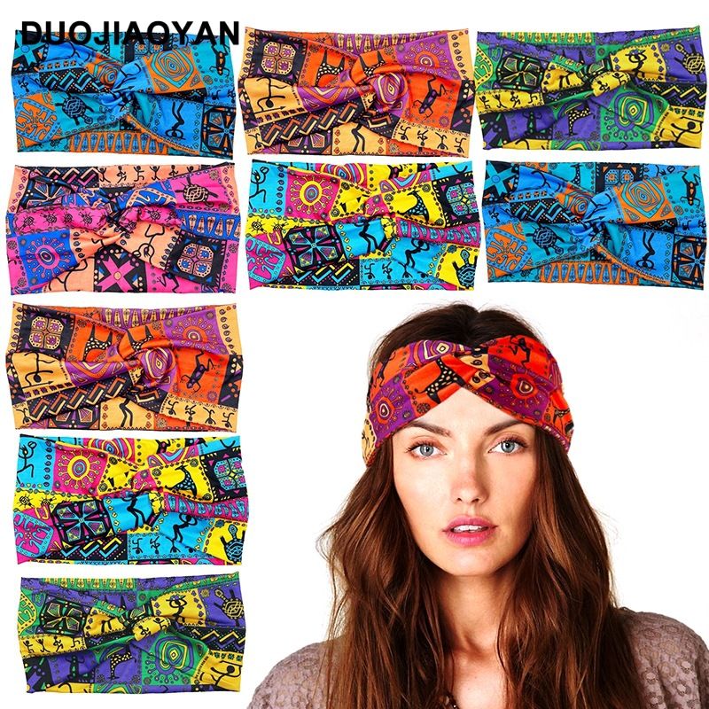 Spring and Summer New Style Knotted Cross Headband Bohemian Print Headband Elastic Headband Headband