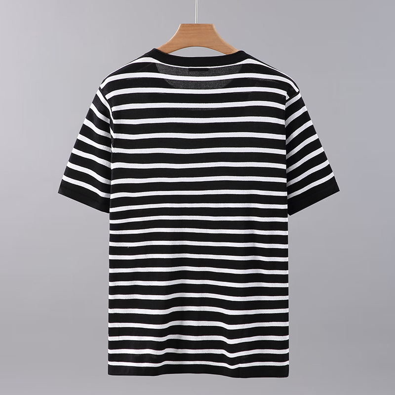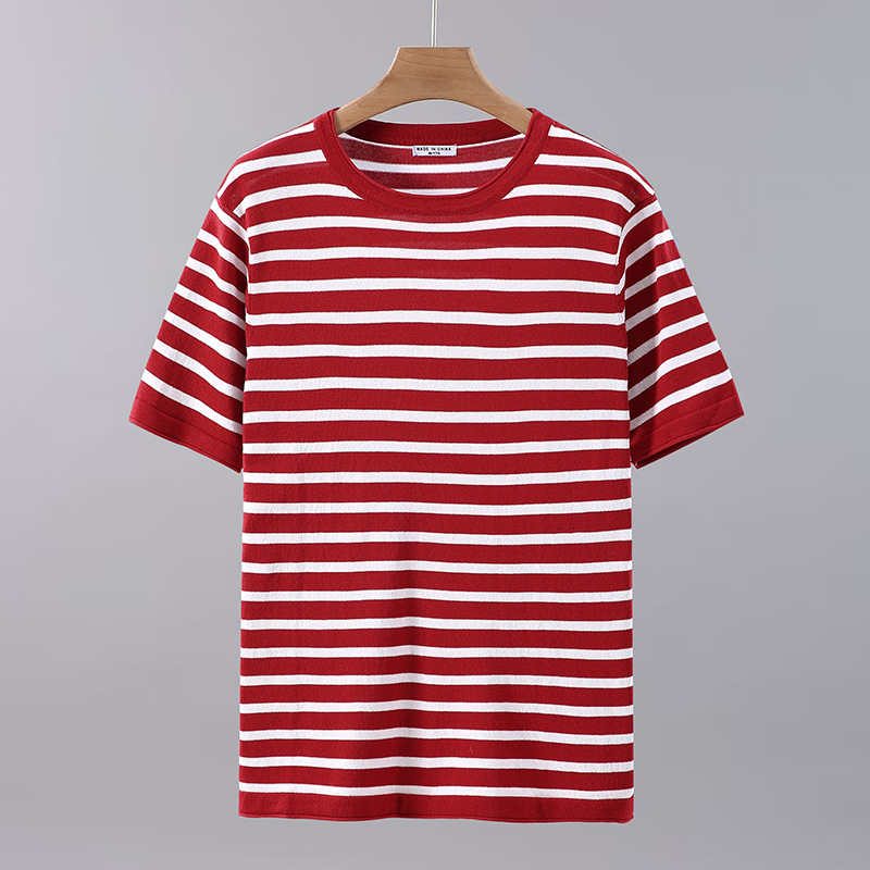 Spring/Summer American Cotton Knitted Half Sleeves Bottom Shirt for Men's Casual Stripe Short Sleeve T-shirt for Men's Trendy T-shirt