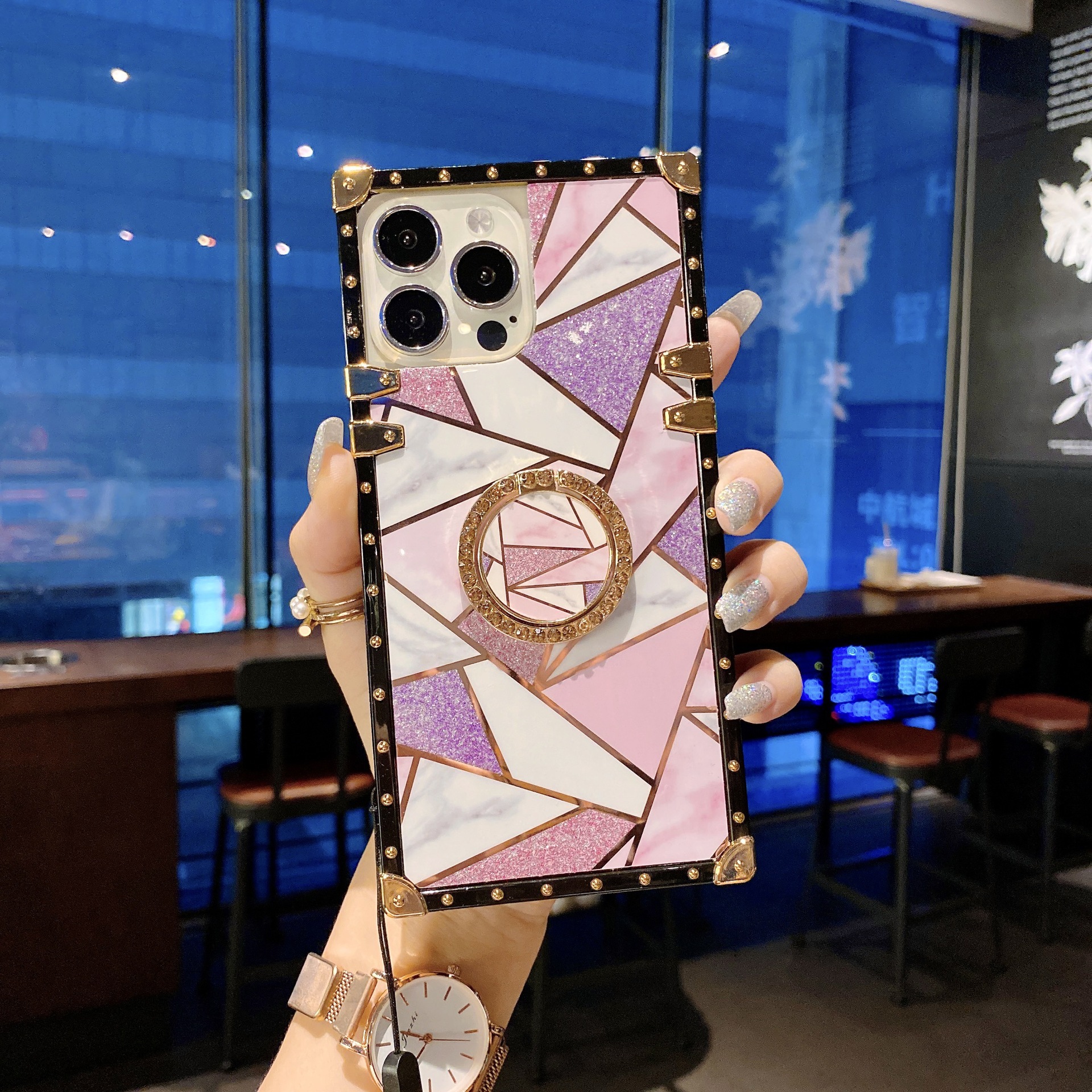 Square electroplated splicing glitter suitable for iPhone 15 PRO Apple 14 holder S24 crossbody rope trendy brand soft