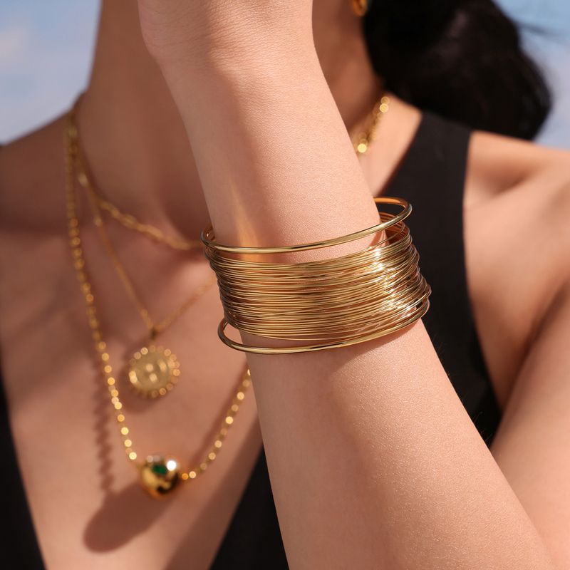 Square Sugar Exaggerated Multi-layer Open Bracelet Stainless Steel Ins Cool Wind Arm Ring Light Luxury Color Preservation Bracelet