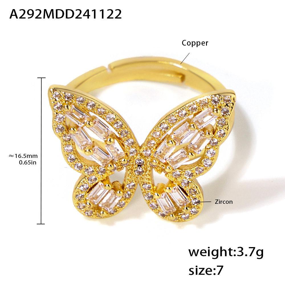 Square Sugar Ins Butterfly Fairy Zircon Ring Fashion Personality Copper Niche Open Mouth Ring