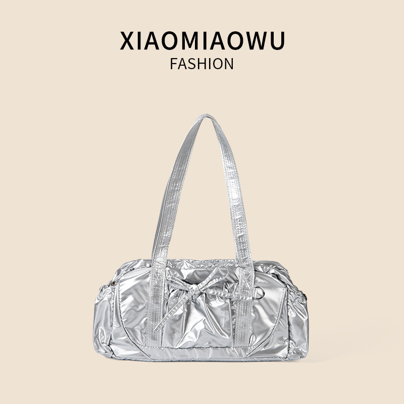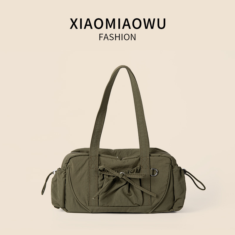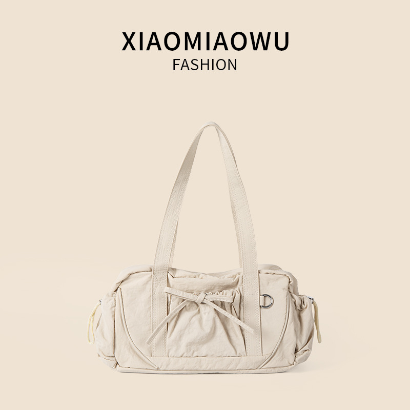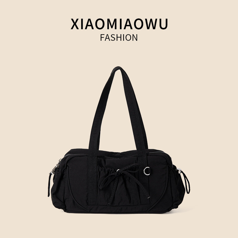 Student shoulder bag, large capacity, women's simple bow nylon handbag, new niche style, armpit bag, high-end feel