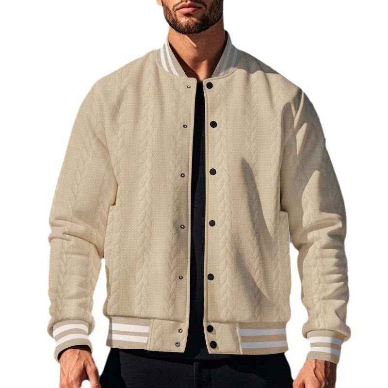 Suitable For All Seasons 2025 Spring And Autumn New Jacquard Button Design Casual Solid Color Men's Cardigan Baseball Jacket