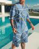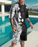 Summer 2024 New Trend 3D Digital Printing Short Sleeve Men's Casual Beach Pants Set