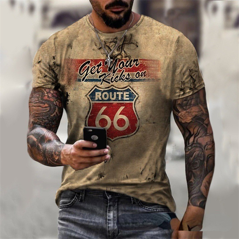 Summer Men T Shirts Vintage Short Sleeve America Route 66 Letter 3D Printed Fashion O Neck T Shirts Oversized Tops Man Clothes
