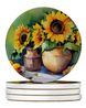 Sunflowers In Watercolor Large Sandstone Coasters Pack Of 4 Absorbent Round Coasters Decor Gifts For Men Or Women, 4 In, Multicolor