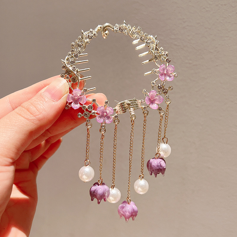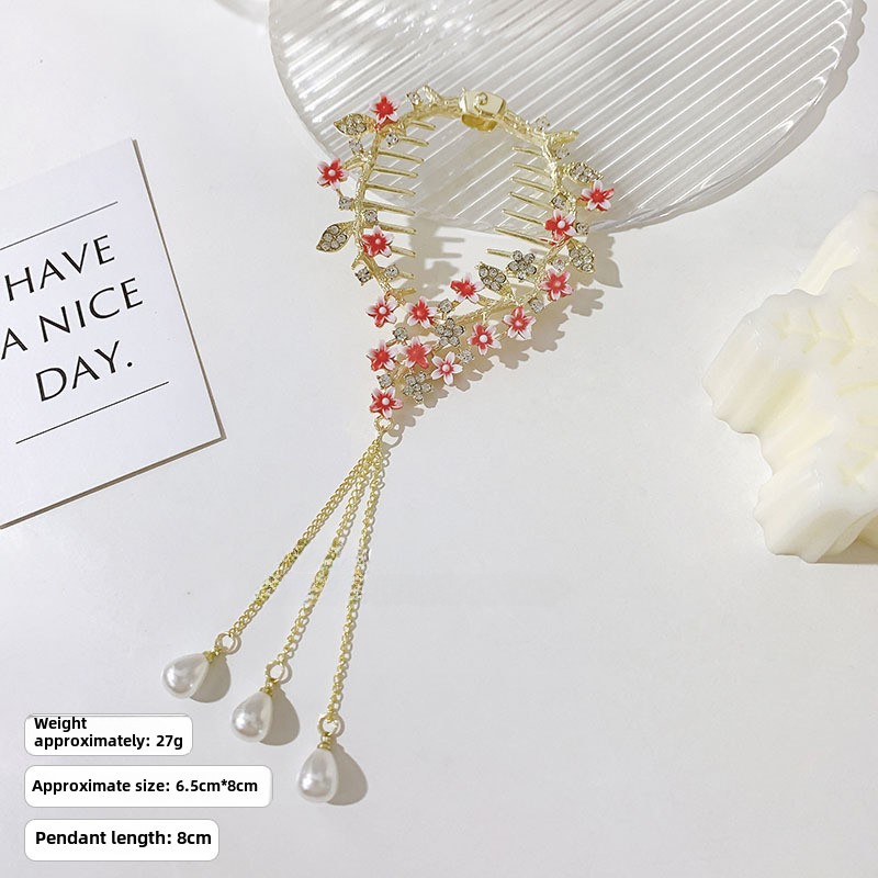 Advanced Design:The hair clip boasts an advanced design with tassel-like flowers, adding a touch of elegance and sophistication to your hairstyle. Versatile Style:With its high-end feel and trendy plant-themed design, this hair clip is perfect for both casual and formal occasions. Functionality:This hair accessory is a versatile tool that can help you create various hair styles, from messy buns to sleek up dos. Quality Material:Made from durable materials, this hair clip is designed to withstand daily wear and tear, ensuring long-lasting use. Comfortable Wear:Despite its robust construction, the hair clip is lightweight and comfortable to wear, making it suitable for all-day use. Fashion Element:Featuring popular elements of plants and flowers, this hair clip is a must-have accessory for fashion-forward individuals.