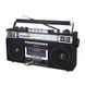 - 4 Band Radio & Cassette Player + Cassette To Mp3 Converter & Bluetooth - AM/FM/SW 1-2 World Band Receiver & MP3 Playback - Convert Analog Music to Digital Music Files, from Cassette to USB or SD Card - Bluetooth Compatible Allows You to Connect to Most External Bluetooth Enabled Devices - Built-in USB Input Compatible, Play Music from a USB Flash Drive - Built-in SD Card Slot Compatible Allows You to Play Music from an SD Card - Cassette Player - Built-in Speaker - 3 Band EQ Mode - 360-degree Antenna - 3.5mm Stereo Earphone Jack - Power Consumption: 20W - Output Power: 4W - AC Power 120/240V ~ 60/50Hz - DC 6V (4 x D) Batteries not included - Accessories: Manual Wood UPC 639131632011 Black UPC 639131232013 Case 10 Unit Dimensions (in) 13.38 x 3.66 x 6.5 Unit Weight (lbs) 7.53 Giftbox Dimensions (in) 14.37 x 4.76 x 7.68 Giftbox Weight (lbs) 8.21