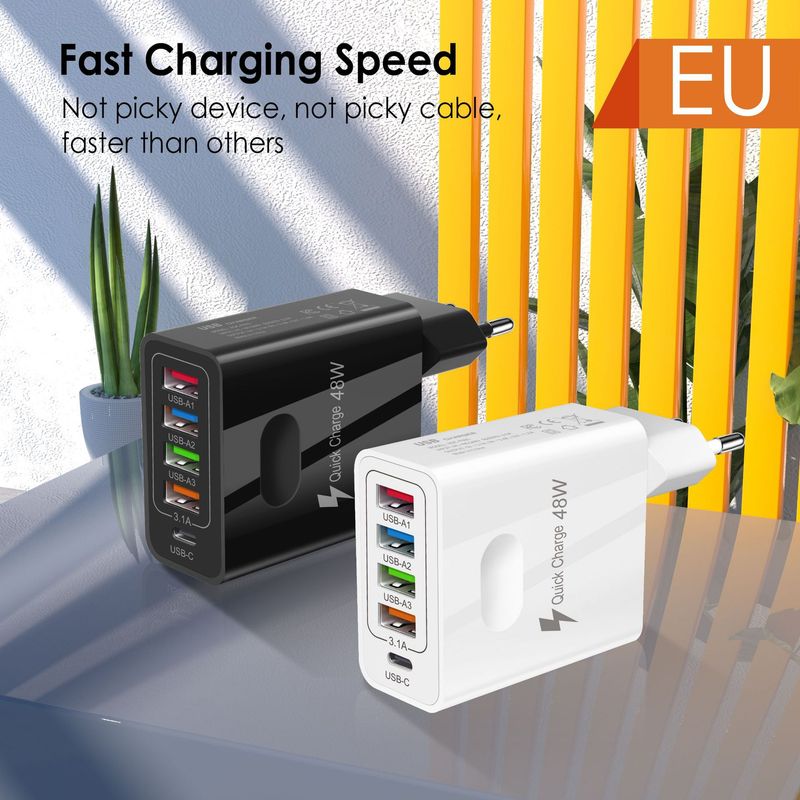 1PD+4USB Mobile Phone Charger 5V3.1A UK Plug Adapter PD+USB Multi-Port Mobile Phone Charging Head