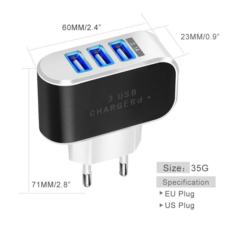 syct 3USB Candy LED Light Phone Charging Head Smart Multi-Port USB Travel Charger