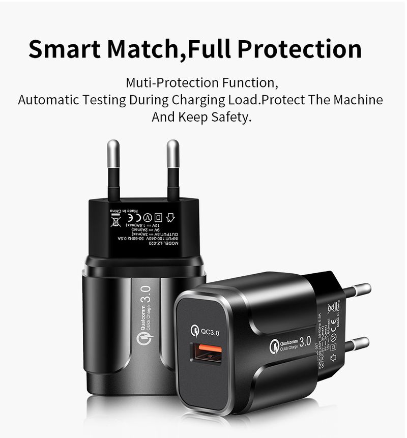 syct Qualcomm QC3.0 Fast Flash Mobile Phone Charger 5V/3A Travel Charging Head European American Standard