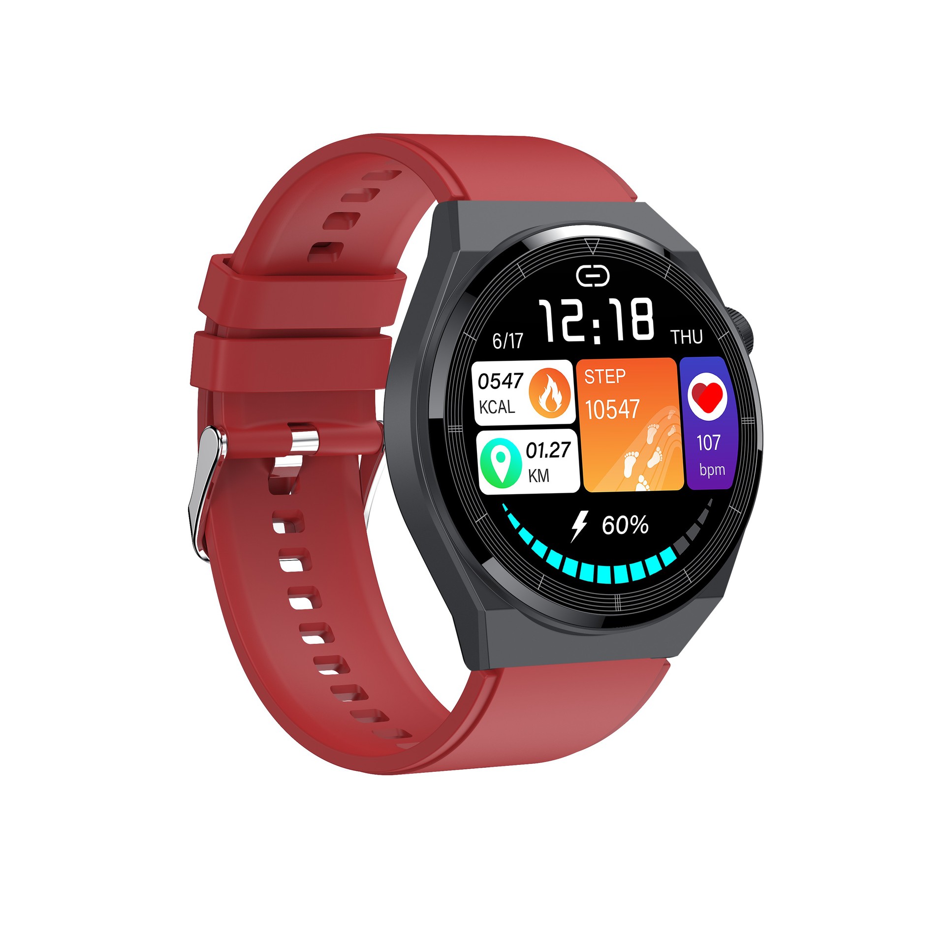 Product colors: 6 color schemes (silicone black, blue red, leather black, leather brown, metal strap black)