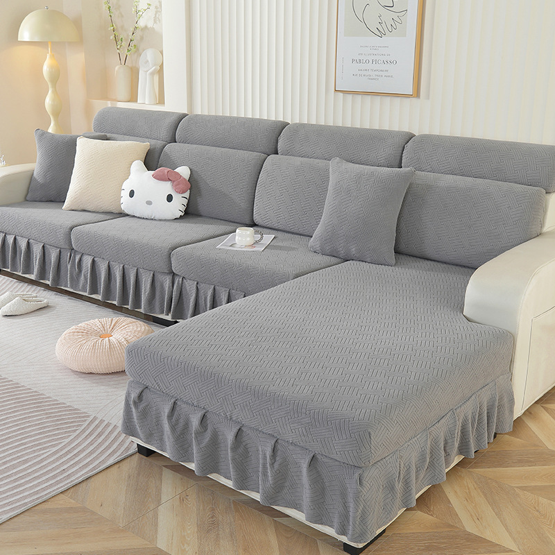 Thickened stretch skirt sofa cover non-slip simple sofa cover four seasons universal solid color sofa cushion cover all-inclusive