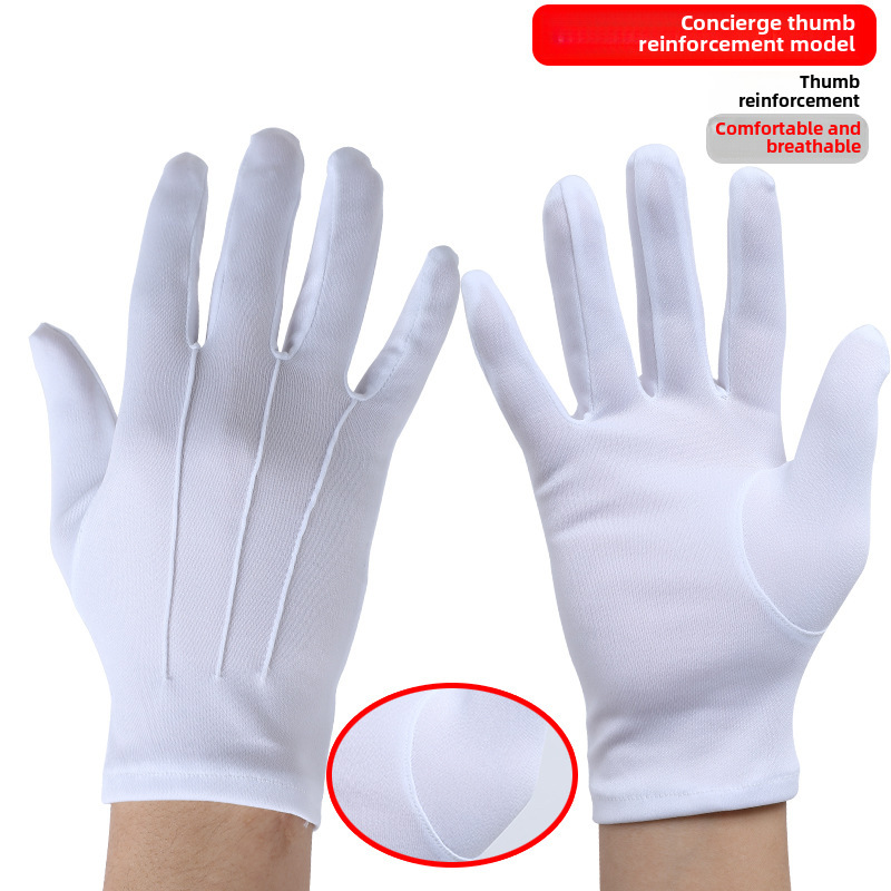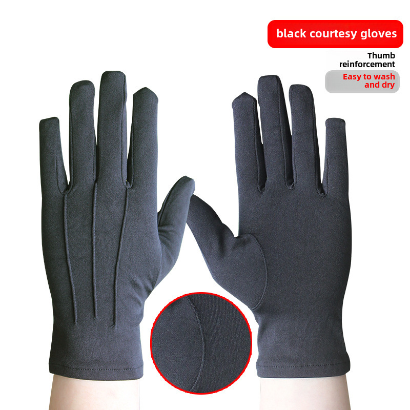Three-tendon Etiquette Black and White Gloves Men and Women Short Thin Breathable Spring and Summer Review Performance Security Driving Concierge