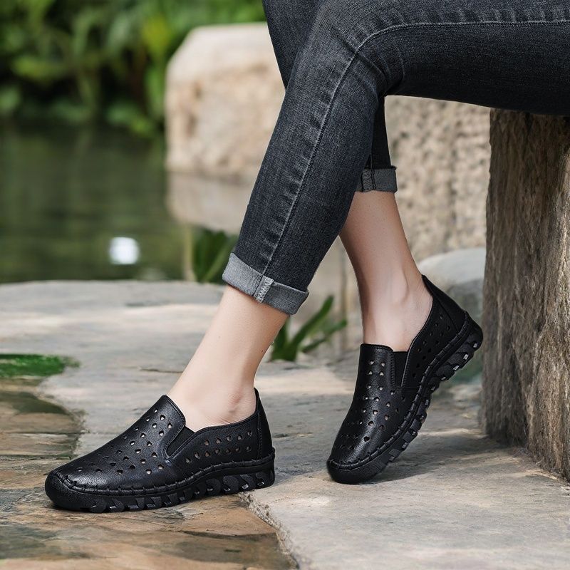 Top layer cowhide perforated shoes, comfortable soft sole, women's round toe sandals, trendy and versatile hollow shoes, Wenzhou leather shoes, women's 24