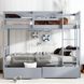 Twin Over Twin Rubber Wood Bunk Bed with 2 Drawers,Convertible into 2 Twin BedsThis bunk bed with concise design comes in a rustic style appearance and complete with 2 drawers,boasts multiple functional features. The innovative design featuring integrated two beds with 2 drawers serves as the focal point,enhancing the aesthetic of any bedroom. Whether you are in search of an endearing and cozy sleeping arrangement or separate beds,this bunk bed is tailored to meet your needs and ensure your satisfaction.DescriptionProduct TypeBunk Bed with DrawersSizeTwin over TwinColorGreyMaterial (main)Rubber wood + Plywood +MDFNumber of SlatsUpper: 13pcs / Lower: 13 pcsSpring BoxNo needAssembly RequiredYesManual and HardwareYesCountry of OriginMalaysiaTechnical DetailsOverall Product Dimension77.3"(L) x 43.5"(W) x 61.3"(H)Overall Product Weight132.3 lbsPackage DetailsPlease refer to the SpecificationBed Weight CapacityUpper: 250 lbs / Lower: 250 lbsSuggested Mattress Thickness6 inches or less