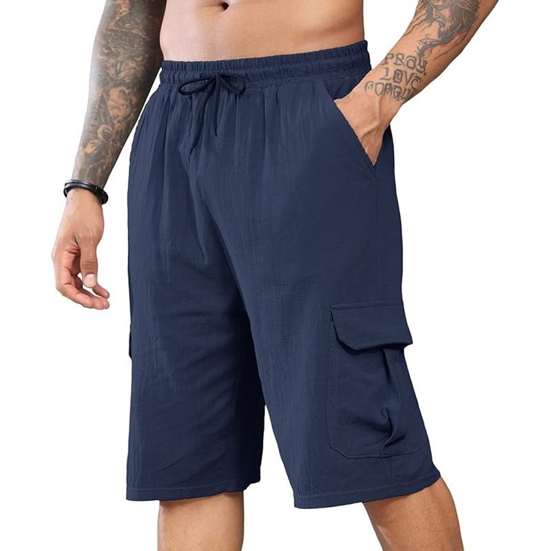 Unbeatable Quality 2024 New Linen Shorts Multi Bag Style Lace Up Men's Beach Workwear Pants
