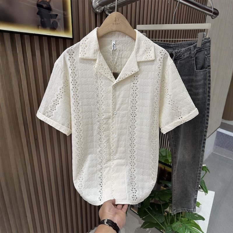 Unbeatable Quality 2025 Hollowed Out Short Sleeved For Men In Ins Summer, Thin Loose Fit, Cool And Casual Trend, Cuban Collar Shirt