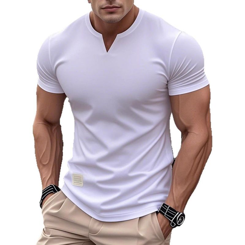 Unbeatable Quality 2025 New Summer Trend Solid Color Round V-neck Slim Fit Short Sleeved Elastic T-shirt, Men's Sports