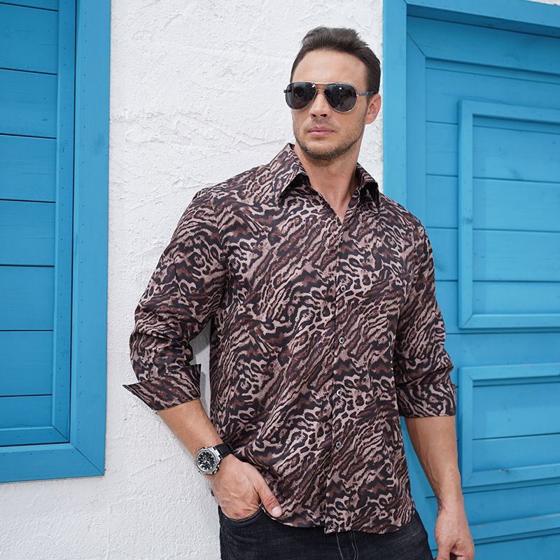 Unbeatable Quality Big Size Men's Long Sleeved Chubby Spring Autumn New Style, Personalized Printed Leopard Print Shirt, Plus Fat And Trend
