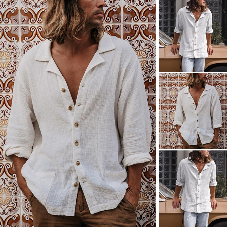 Unbeatable Quality New Double Layered Wrinkled Loose And Casual Cuban Flip Collar Shirt, Men's Solid Color Comfortable Shirt