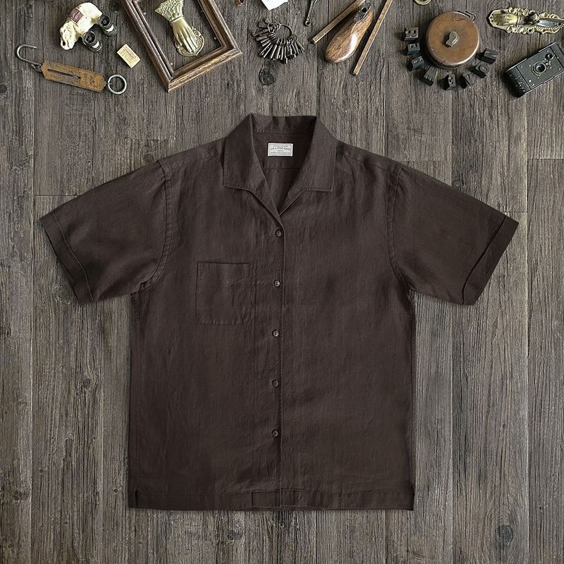 New summer American linen short sleeved shirt for men, fashionable and versatile, Cuban collar casual solid color shirt for men, trendy