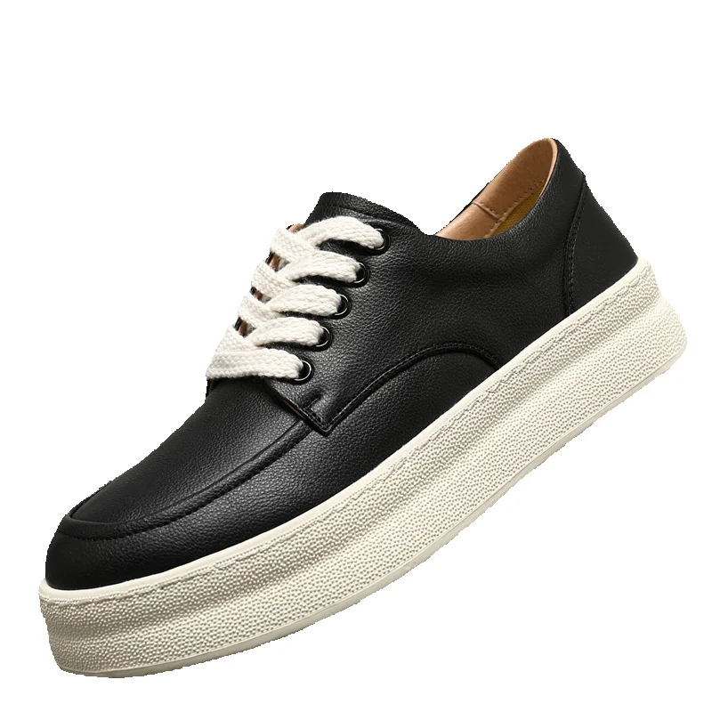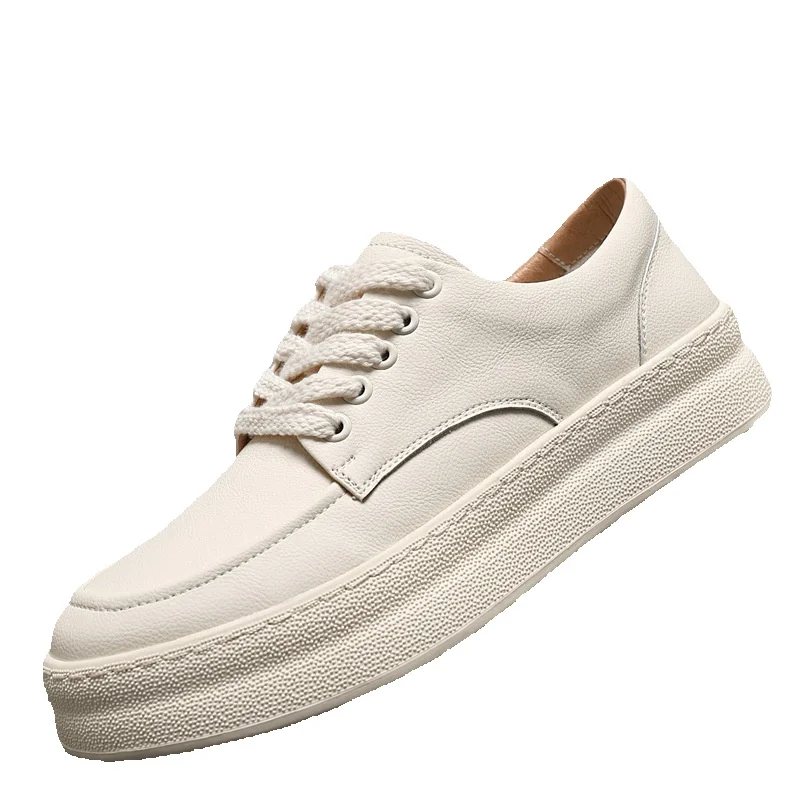 Unbeatable Quality Real Leather Breathable White For Men In The Summer Of 2025, Versatile And Trendy Casual Board Shoes, Sports Style Thick