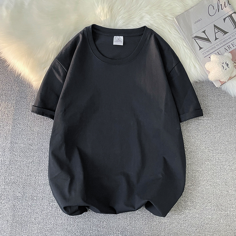 Short sleeved men's and women's summer loose plus solid color T-shirt top, simple and handsome sports shirt, men's cotton T-shirt